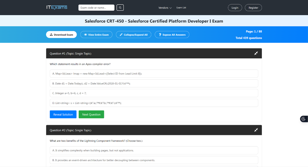 You do not have to memorize Salesforce PD1 answers mindlessly. Instead, your basic goal should be to absorb the logic of these answers to be able to apply it in new non-standard situations as well. The Salesforce exam is not designed to require high-level remembering skills. You have to understand the material and know confidently why your answer is the best, most logically, and professionally completed one.